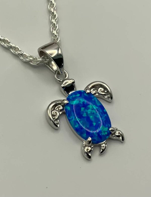 This 100% 925 sterling silver necklace and lab created Opal charm will steal your heart away. It's just perfect for your summer wardrobe. The turtle with it's bale measures 1" in length