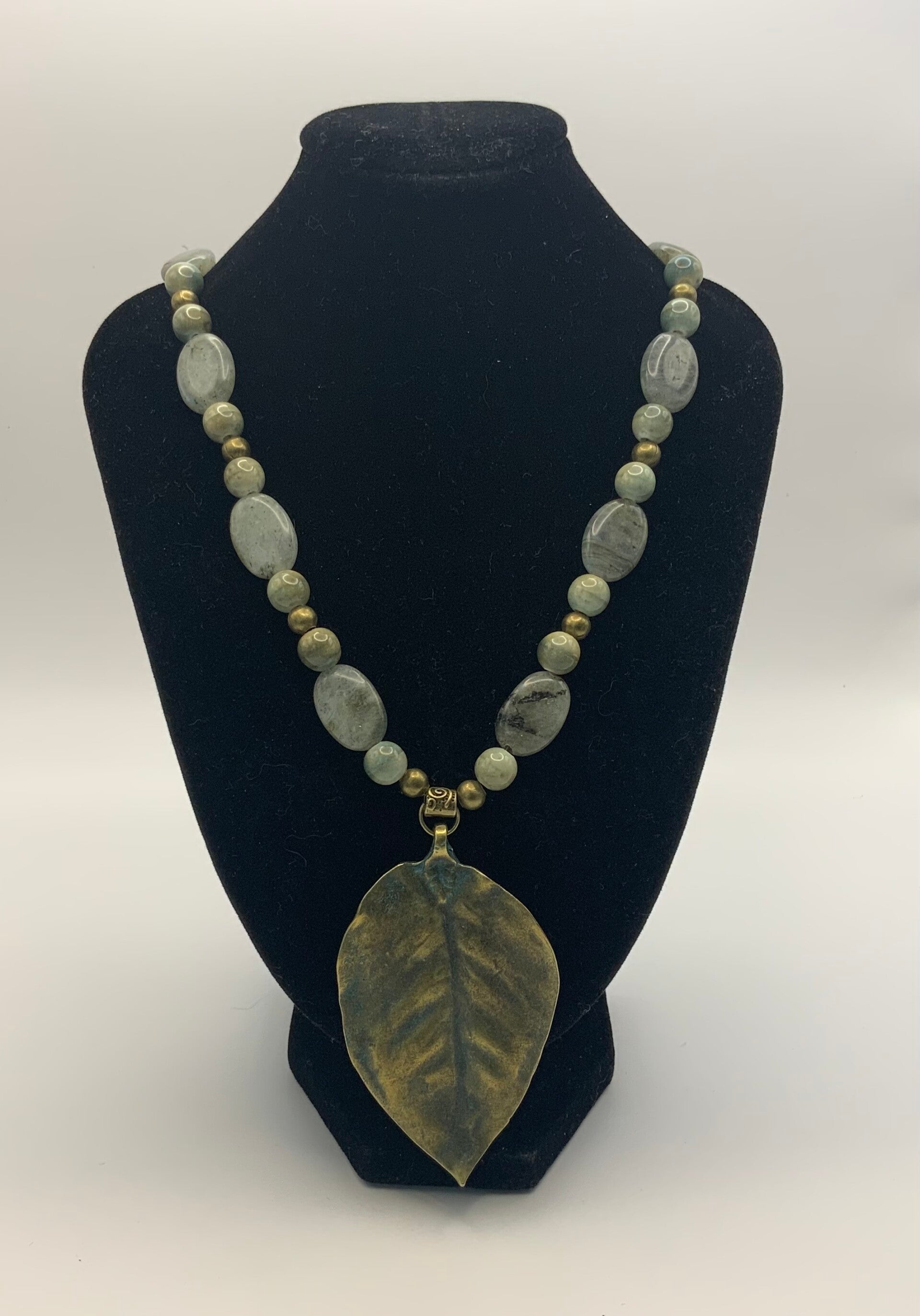 This gorgeous necklace features beads of genuine labradorite. It also features copper and ceramic color beads to accent the natural stone. The 26" length includes the pennant. The pennant itself measures 3" in length and is 1 3/4" wide.