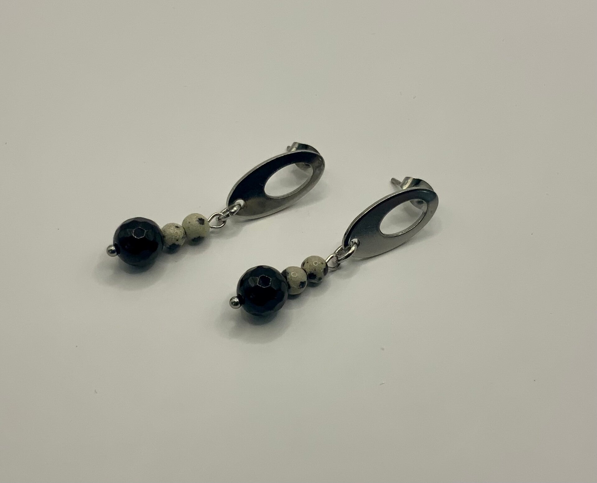 African Tourmaline beads make up these earrings which hang from a surgical steel post. Beads hang 3/4" from post.
