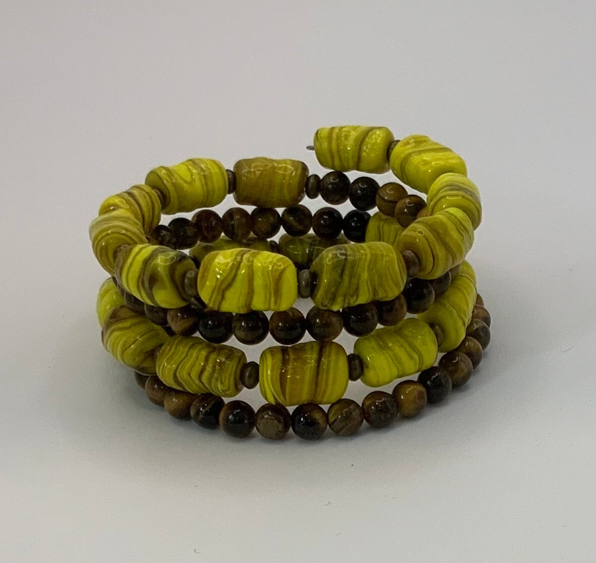 This gorgeous memory bracelet is made with handmade glass beads and genuine tigers eye beads. This will fit up to a size 8" wrist.