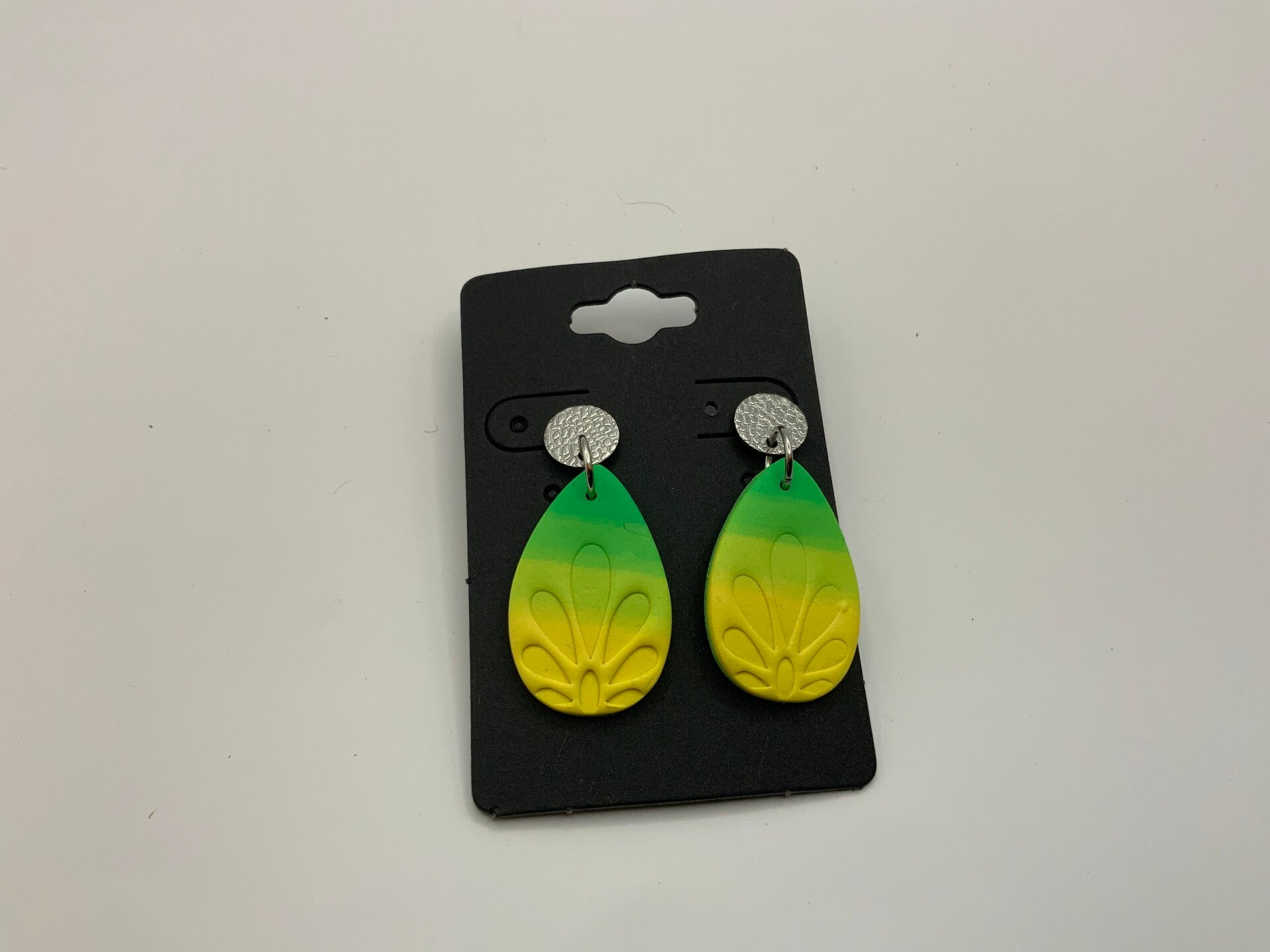 Do you want dangling earrings but hate the weight on your ears? These are what your waiting for. Hand sculpted, these earrings are lightweight and stylish. Perfect for all your outfits. These earrings hang from surgical stainless steel posts and feature an imprinted floral design. Cheerful and fun and ready for your summer wardrobe.