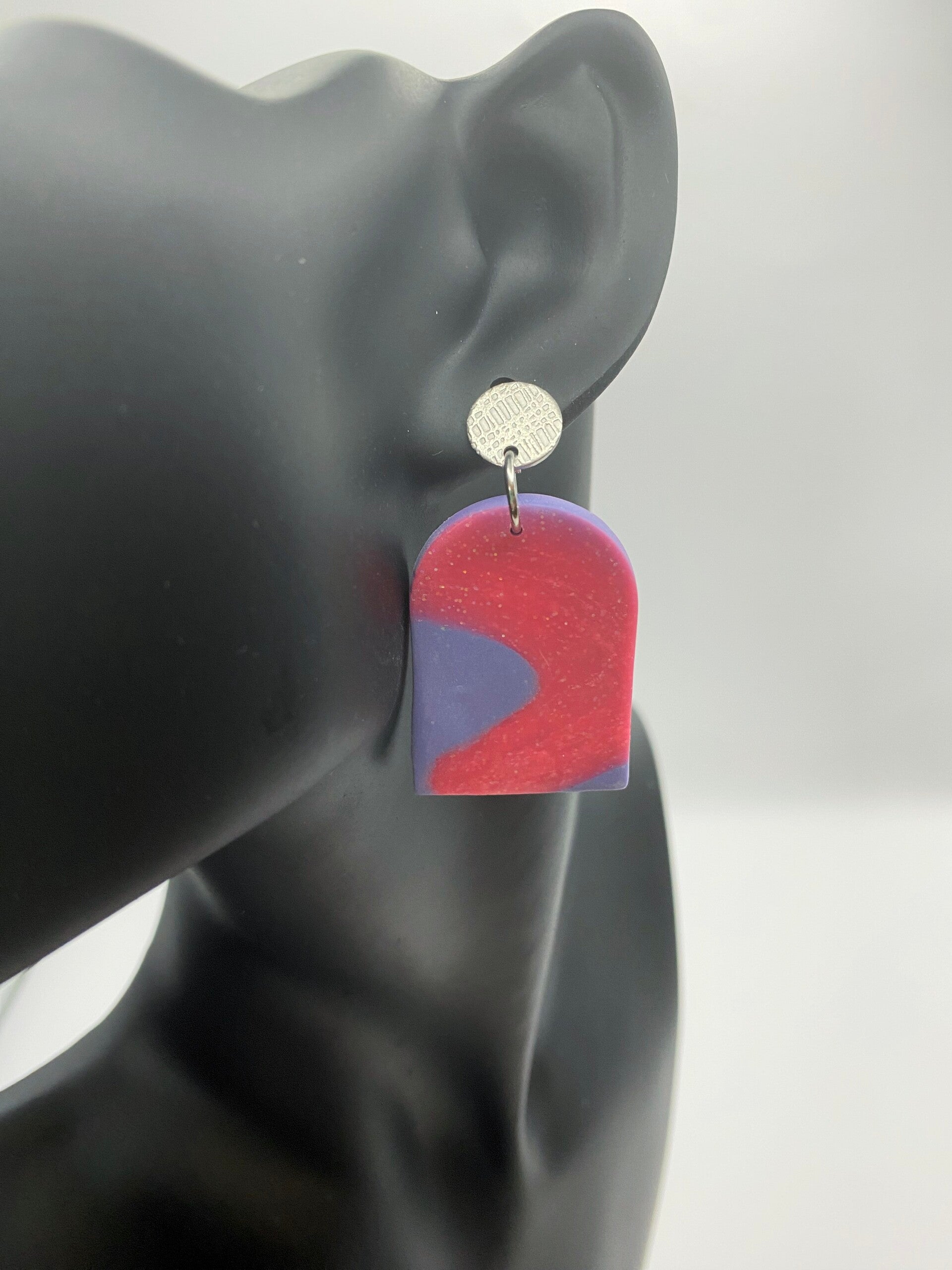 Do you want dangling earrings but hate the weight on your ears?  These are what your waiting for.  Hand sculpted, these earrings are lightweight and stylish.  Perfect for all your outfits.  These earrings hang from surgical stainless steel posts.