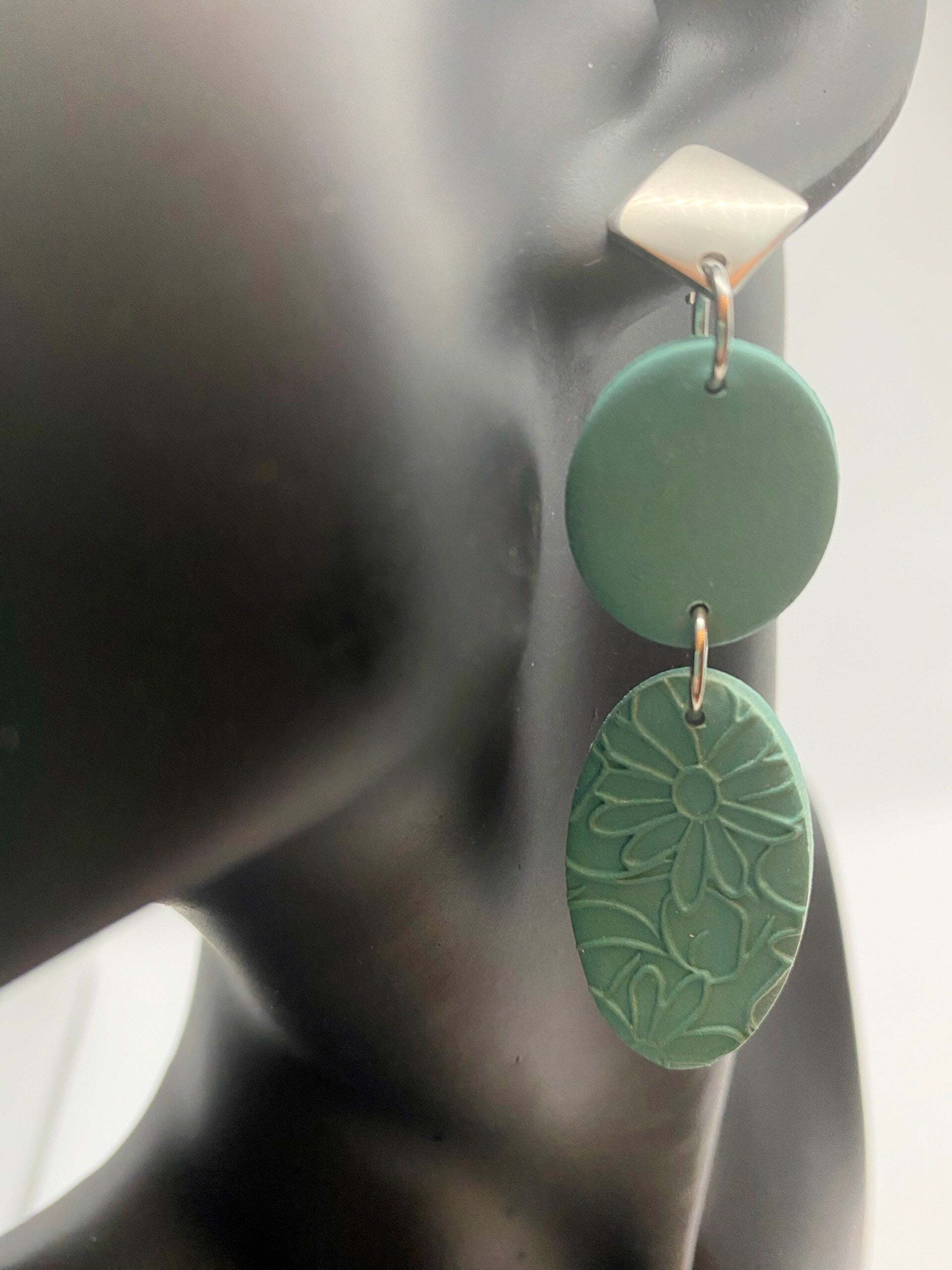 Do you want dangling earrings but hate the weight on your ears? These are what your waiting for. Hand sculpted, these earrings are lightweight and stylish. Perfect for all your outfits. These earrings hang from surgical stainless steel posts and feature a lovely floral imprint.