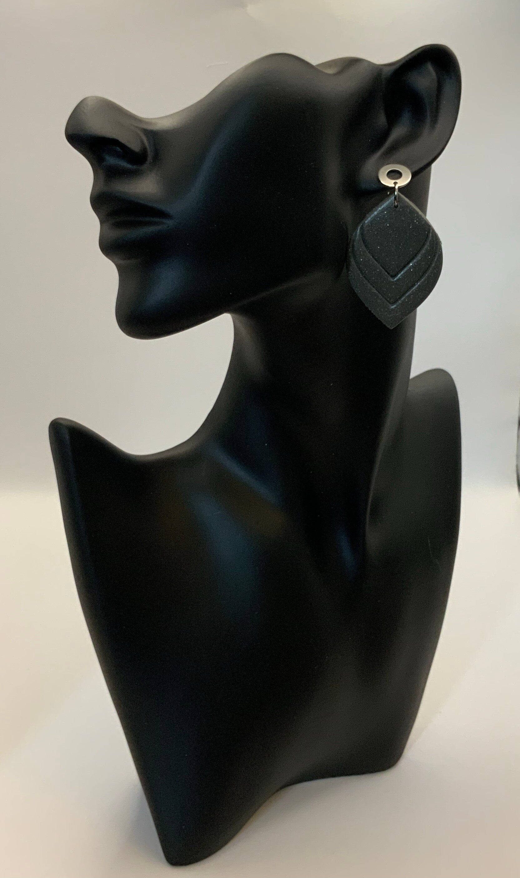 Do you want dangling earrings but hate the weight on your ears? These are what your waiting for. Hand sculpted, these earrings are lightweight and stylish. Perfect for all your outfits. These earrings hang from surgical stainless steel posts and are a deep gray with a bit of sparkle.