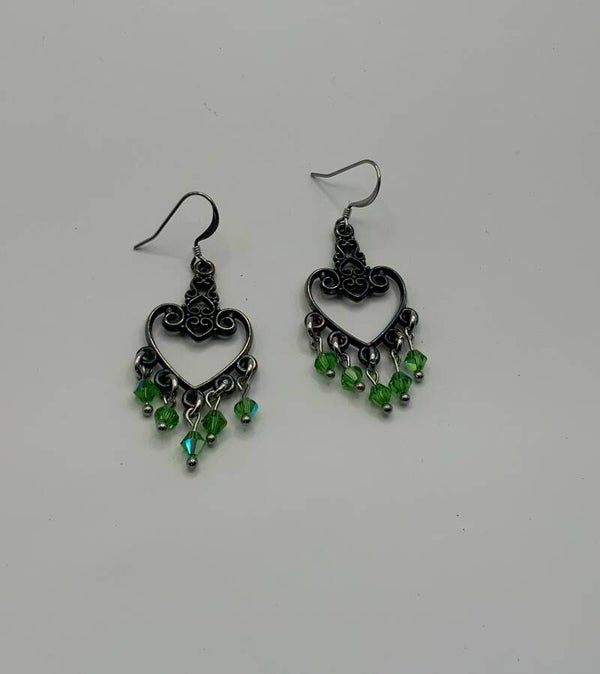Do you want dangling earrings but hate the weight on your ears? These are what your waiting for. Hand sculpted, these earrings are lightweight and stylish. Perfect for all your outfits. These peridot antique chandelier earrings hang from surgical stainless steel posts.