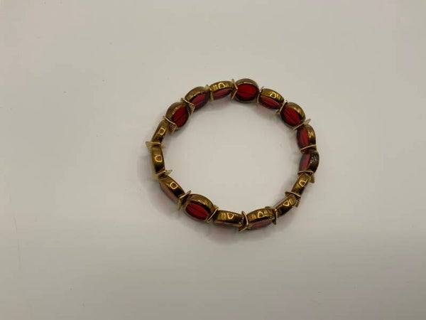 This beautiful ruby glass and coppery bracelet is reminiscent of Christmas past. This is just perfect for those who love a vintage look. This is for a size 7 wrist.