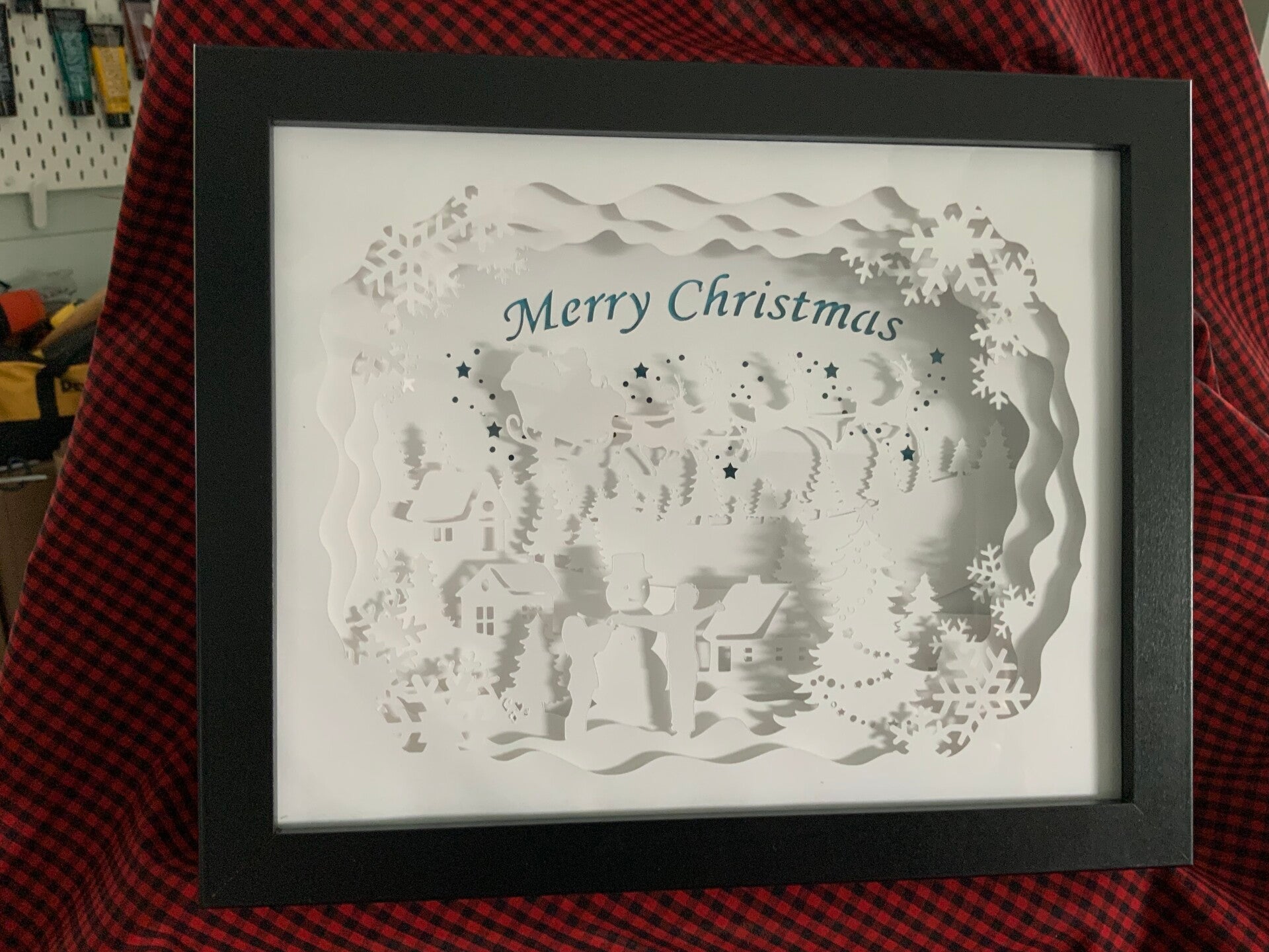 Words cannot describe how beautiful of a piece this is. A great gift for someone special or treat yourself. This piece measures 8 x 10. It is a scene of children in the village building a snowman while Santa flies overhead. This can stand alone on a shelf but can also be hung from the wall.