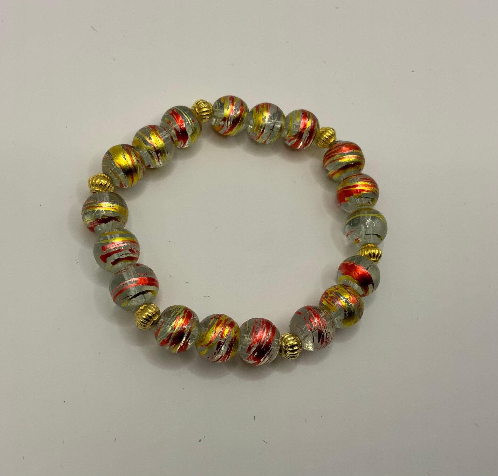 This glass and gold metal beaded bracelet is just perfect for a petite person. The beads are sized so as not to overwhelm the smaller wrist. Wearing this will surely put you in a festive frame of mind. This is for a size 5 1/2" wrist.