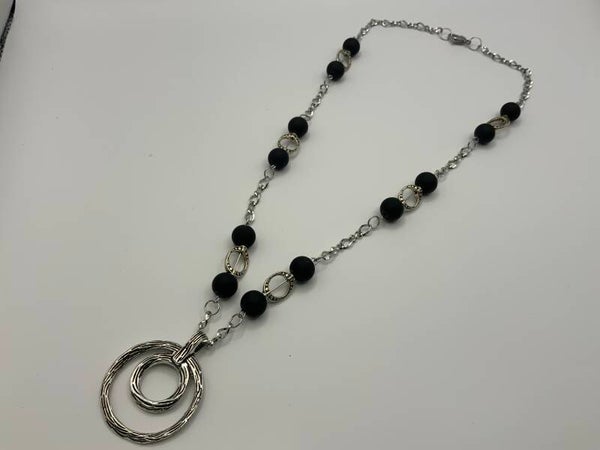 This beautiful necklace is all hand beaded. The chain and closures are 100% surgical stainless steel. The Pennant measures 1 1/2" round. The length including pennant is 25".