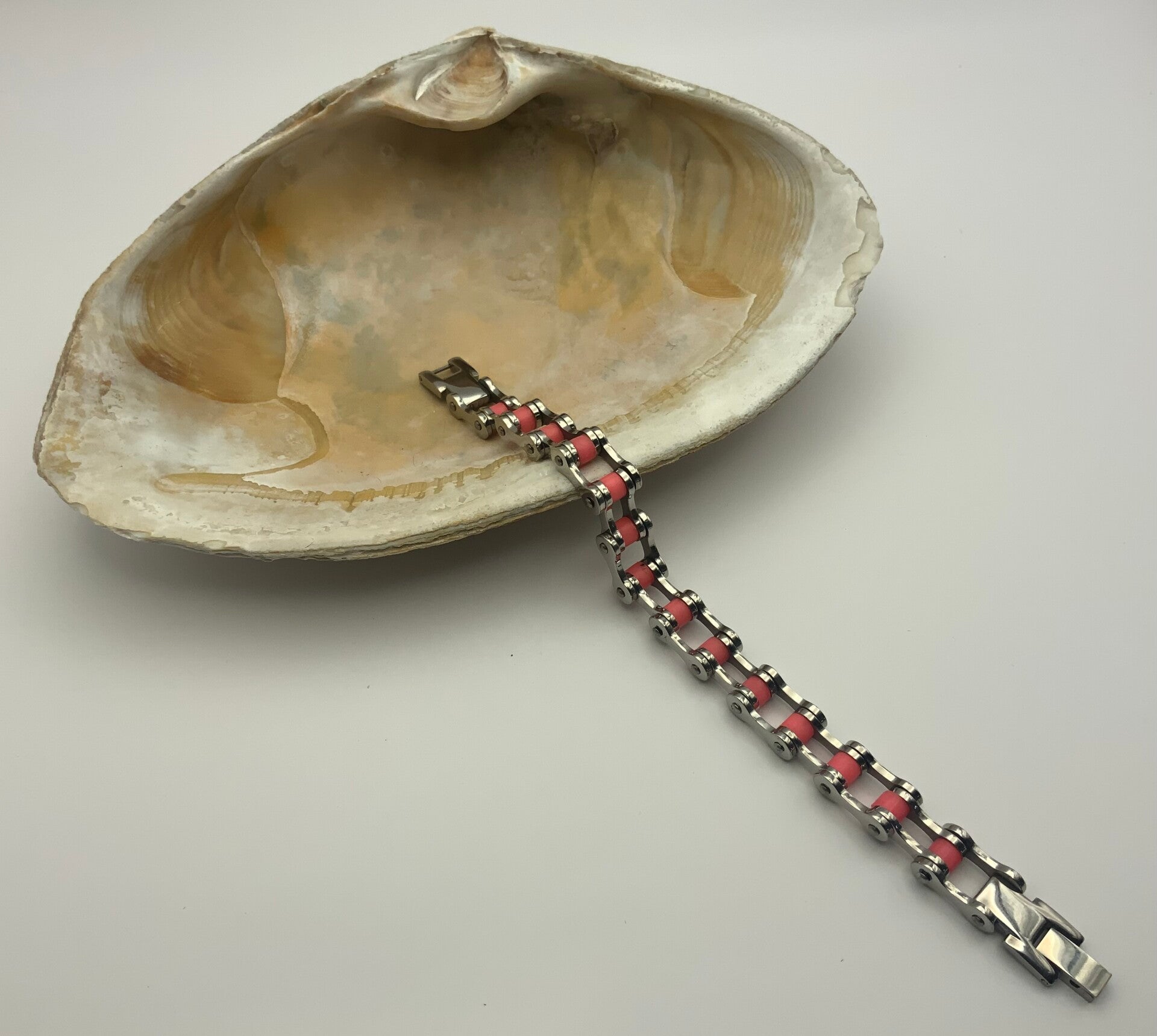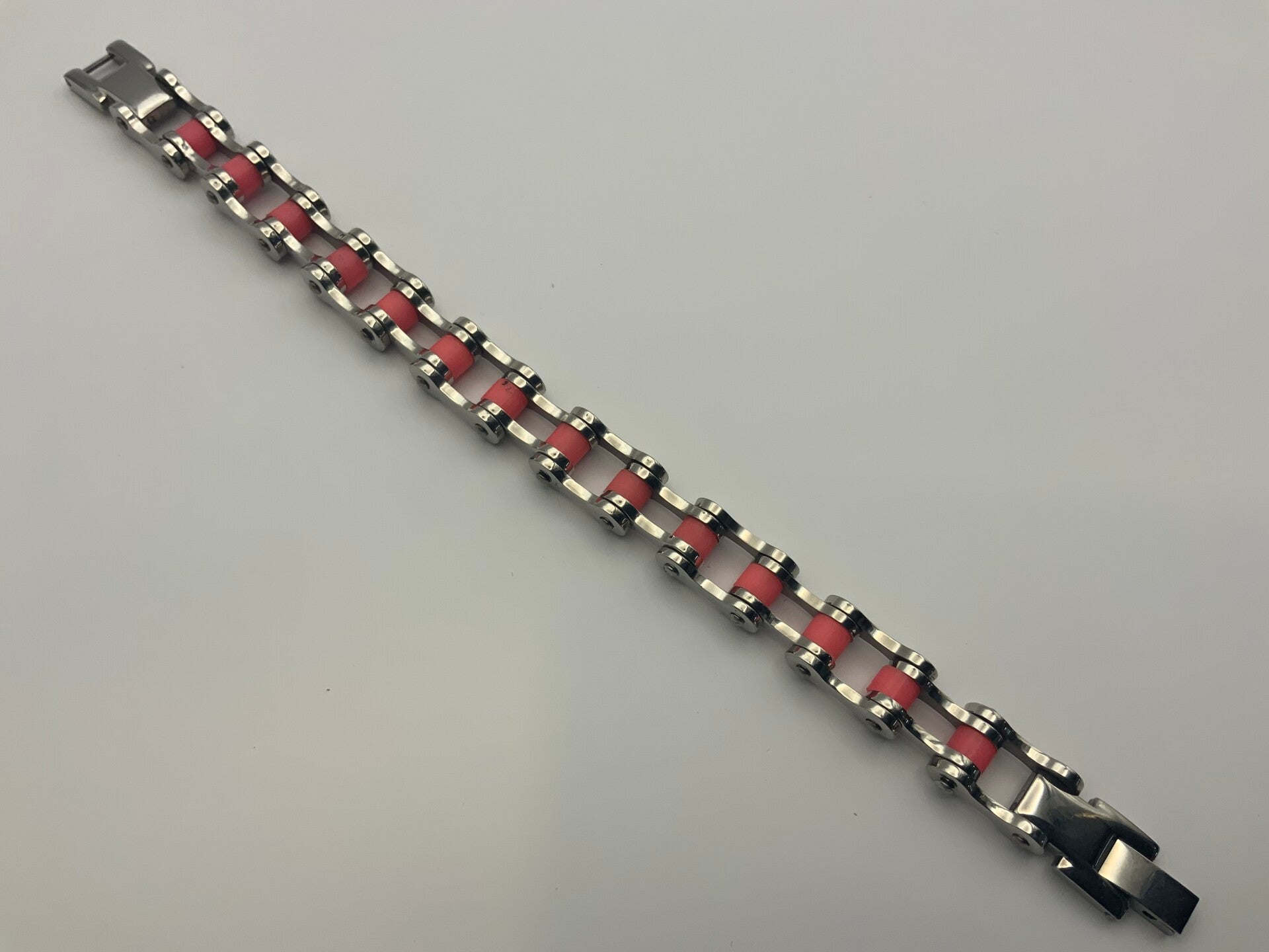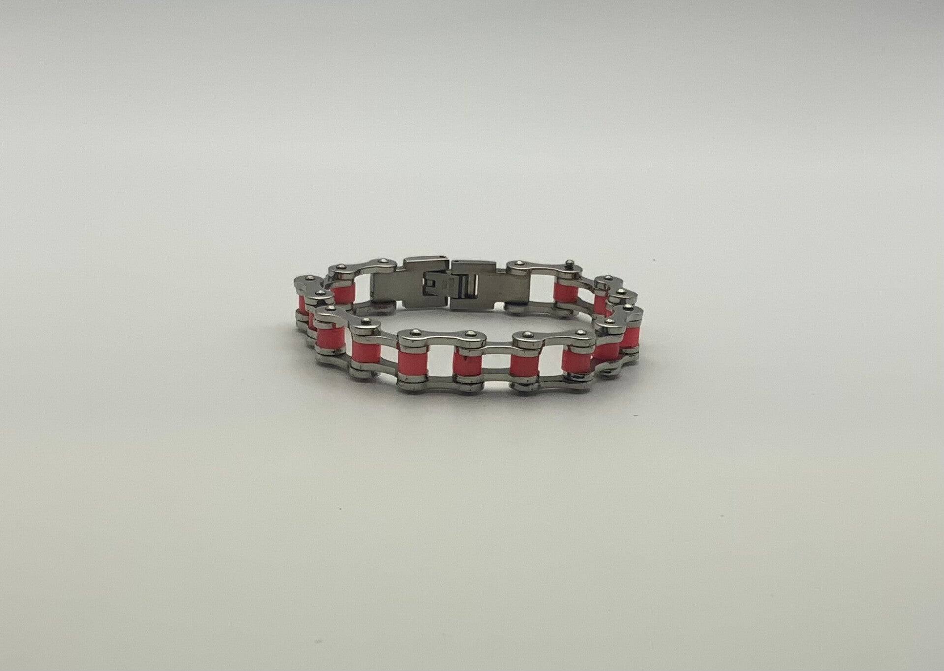 This stainless steel bracelet made of a bike chain is just perfect for your biking enthusiast or anyone looking for something different. It closes with a latch clasp and will look fabulous on your size 6 wrist.