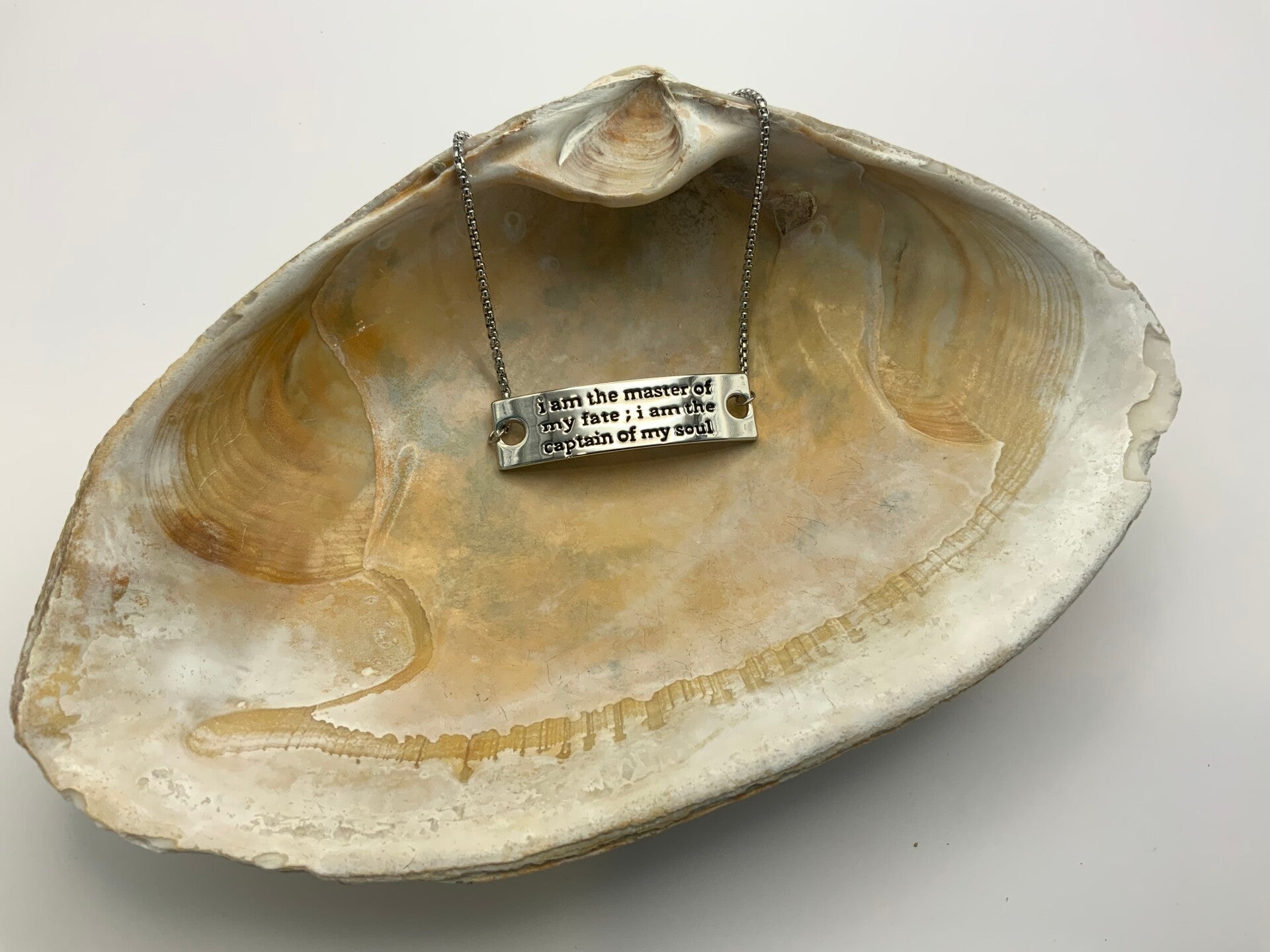 This is part of my new line of inspirational messages. I am the master of my fate; I am the captain of my soul is featured on this slide bracelet that fits up to a size 8 wrist. This bracelet is 100% surgical stainless steel.