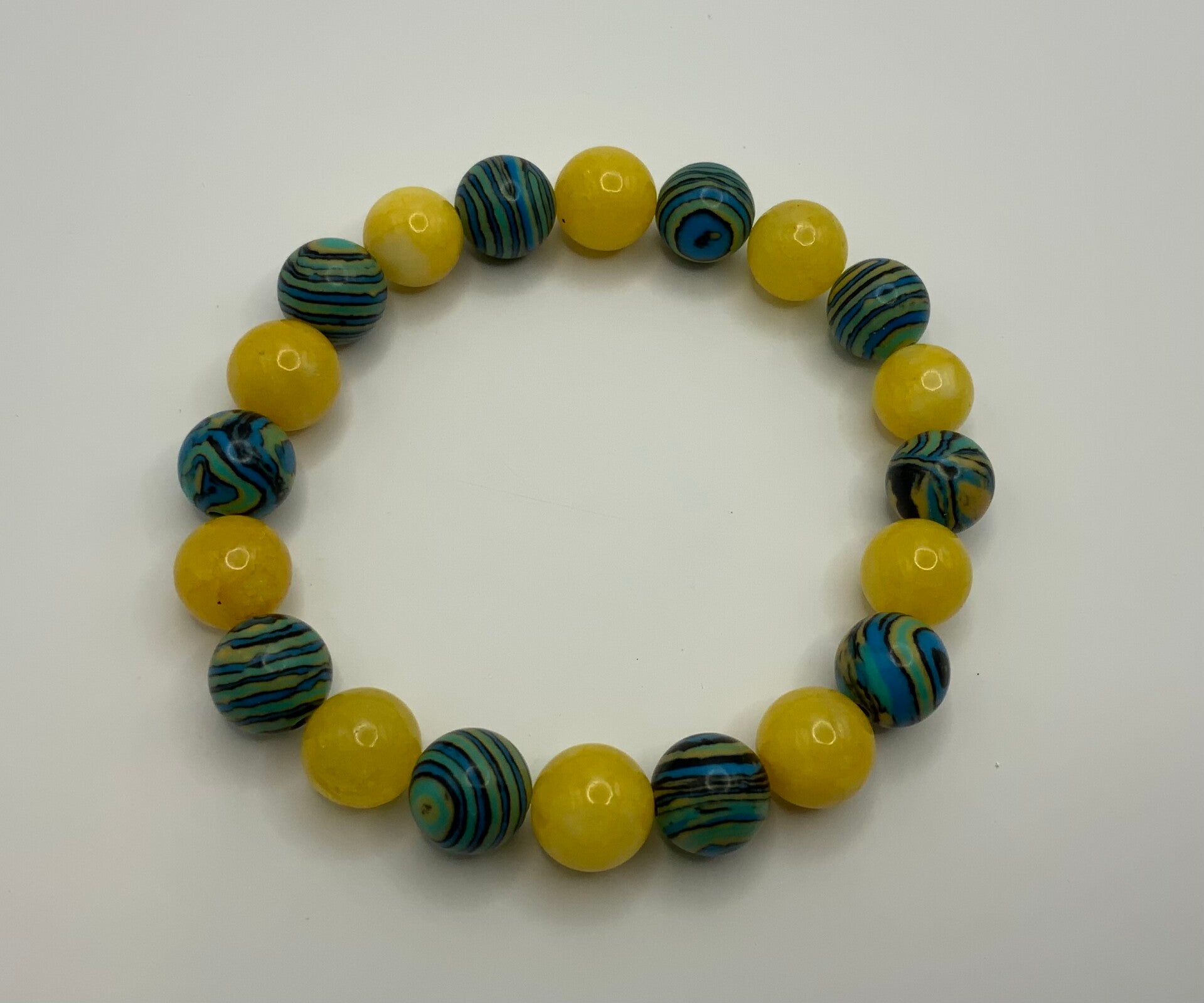 This bracelet screams fun fun fun! These unique beads are paired with beautiful yellow agates. Sure to brighten up any look. This is for a size 7 wrist.